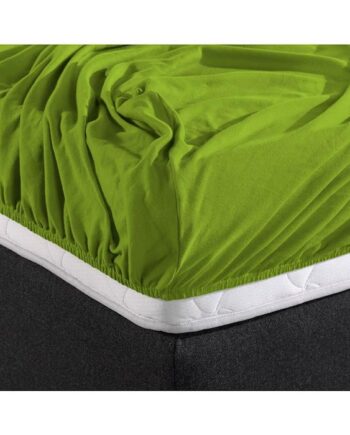 Jersey hoeslaken in de kleur groen uit 100% katoen met een hoekhoogte van 40 cm, rondom voorzien van elastiek. Dit hoeslaken is verkrijgbaar in verschillende kleuren en maten. Uitstekende pasvorm, makkelijk wasbaar en sneldrogend.